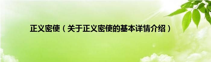 本文关于正义密使的基本详情介绍就讲解完毕,希望对大家有所帮助。