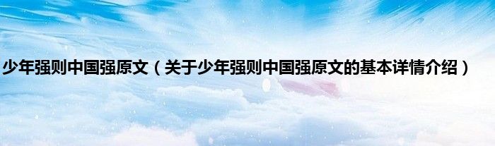 本文关于少年强则中国强原文的基本详情介绍就讲解完毕,希望对大家有所帮助。