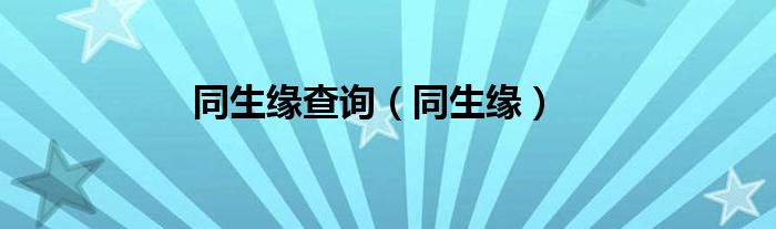 大家好,小问来为大家解答以上问题。同生缘查询,同生缘这个很多人还不知道,现在让我们一起来看看吧!