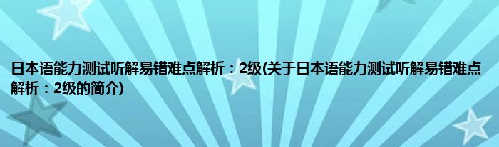 本文关于日本语能力测试听解易错难点解析:2级的简介就讲解完毕,希望对大家有所帮助。