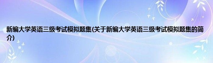 本文关于新编大学英语三级考试模拟题集的简介就讲解完毕,希望对大家有所帮助。
