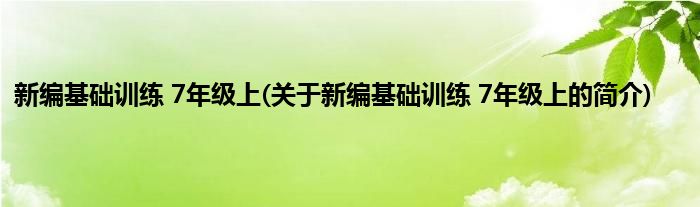 新编基础训练 7年级上(关于新编基础训练 7年级上的简介)