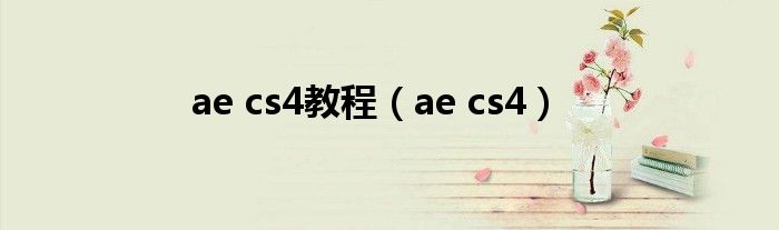 大家好,小问来为大家解答以上问题。ae cs4教程,ae cs4这个很多人还不知道,现在让我们一起来看看吧!