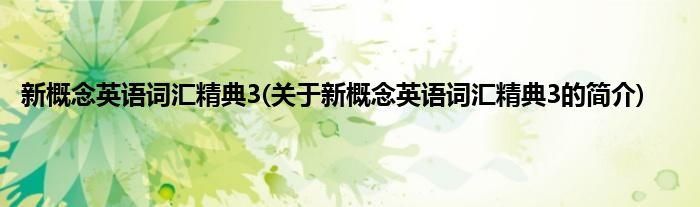 1、 《新概念英语词汇精典3》是2010年8月北京语言大学出版社出版的图书。