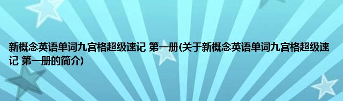 本文关于新概念英语单词九宫格超级速记 第一册的简介就讲解完毕,希望对大家有所帮助。