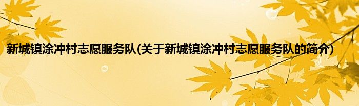本文关于新城镇涂冲村志愿服务队的简介就讲解完毕,希望对大家有所帮助。