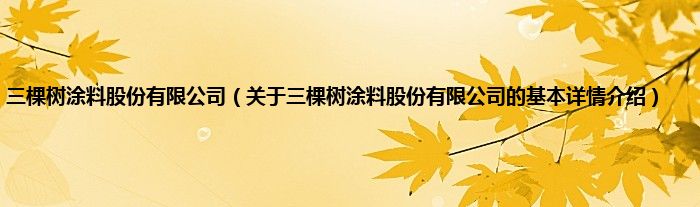 本文关于三棵树涂料股份有限公司的基本详情介绍就讲解完毕,希望对大家有所帮助。