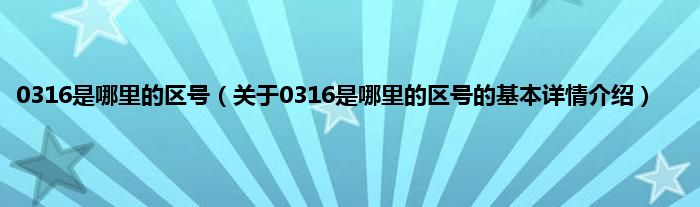 本文关于0316是哪里的区号的基本详情介绍就讲解完毕,希望对大家有所帮助。