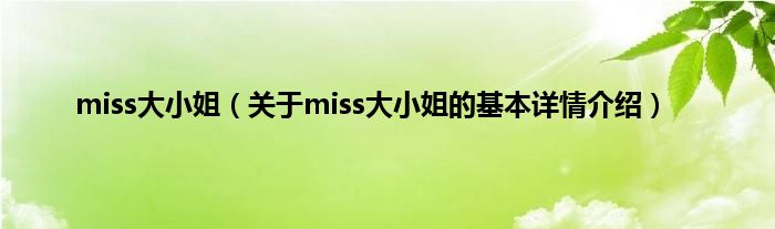 本文关于miss大小姐的基本详情介绍就讲解完毕,希望对大家有所帮助。