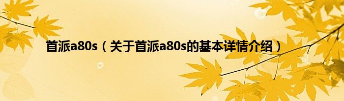 本文关于首派a80s的基本详情介绍就讲解完毕,希望对大家有所帮助。