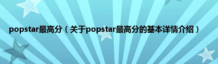 popstar最高分(关于popstar最高分的基本详情介绍)