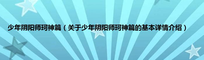 本文关于少年阴阳师珂神篇的基本详情介绍就讲解完毕,希望对大家有所帮助。