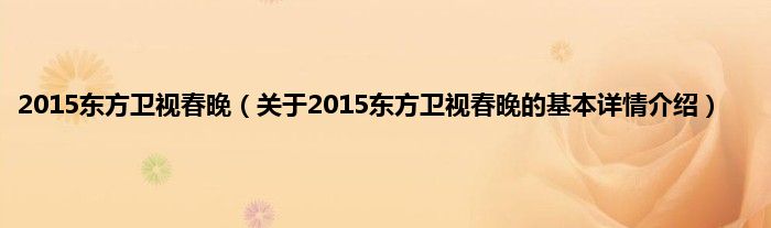 本文关于2015东方卫视春晚的基本详情介绍就讲解完毕,希望对大家有所帮助。