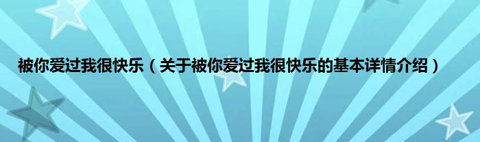 本文关于被你爱过我很快乐的基本详情介绍就讲解完毕,希望对大家有所帮助。
