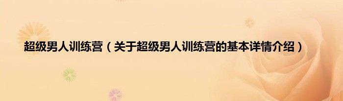 超级男人训练营(关于超级男人训练营的基本详情介绍)