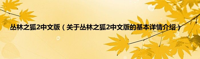 本文关于丛林之狐2中文版的基本详情介绍就讲解完毕,希望对大家有所帮助。