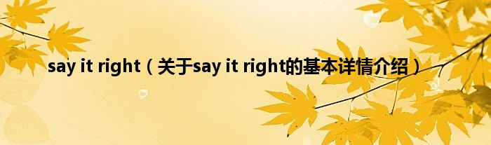 本文关于say it right的基本详情介绍就讲解完毕,希望对大家有所帮助。