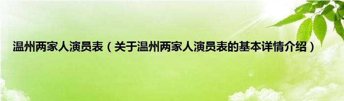 本文关于温州两家人演员表的基本详情介绍就讲解完毕,希望对大家有所帮助。