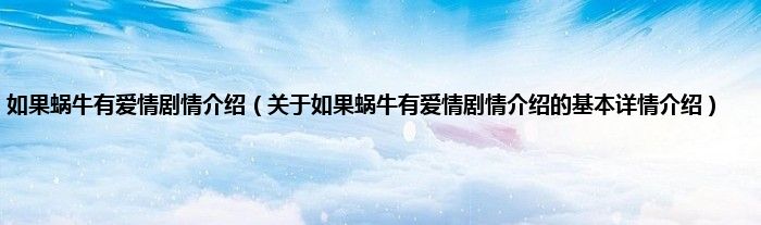 大家好我是小蝌蚪,如果蜗牛有爱情剧情介绍,关于如果蜗牛有爱情剧情介绍的基本详情介绍很多人还不知道,那么现在让我们一起来看看吧!
