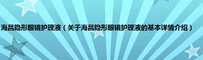 本文关于海昌隐形眼镜护理液的基本详情介绍就讲解完毕,希望对大家有所帮助。