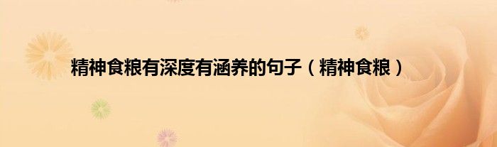 大家好,小问来为大家解答以上问题。精神食粮有深度有涵养的句子,精神食粮这个很多人还不知道,现在让我们一起来看看吧!