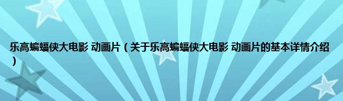 本文关于乐高蝙蝠侠大电影 动画片的基本详情介绍就讲解完毕,希望对大家有所帮助。