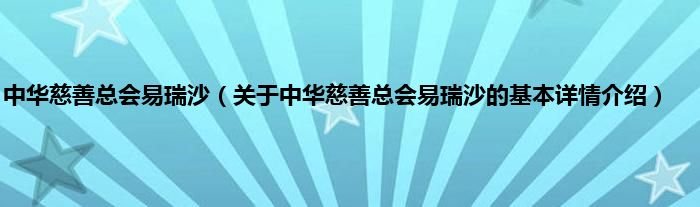 本文关于中华慈善总会易瑞沙的基本详情介绍就讲解完毕,希望对大家有所帮助。