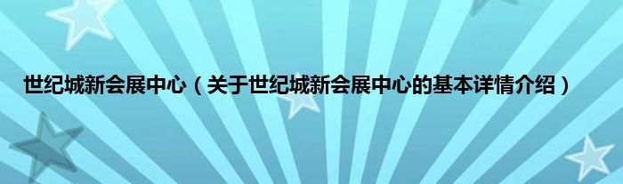 本文关于世纪城新会展中心的基本详情介绍就讲解完毕,希望对大家有所帮助。