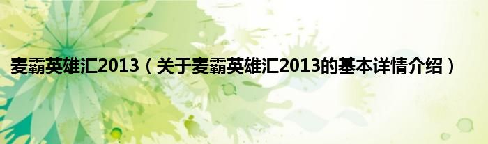 本文关于麦霸英雄汇2013的基本详情介绍就讲解完毕,希望对大家有所帮助。