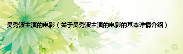 本文关于吴秀波主演的电影的基本详情介绍就讲解完毕,希望对大家有所帮助。