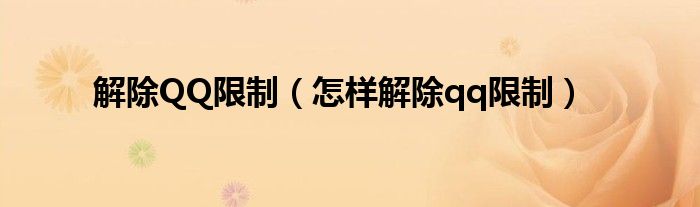 以上就是【解除QQ限制,怎样解除qq限制】相关内容。