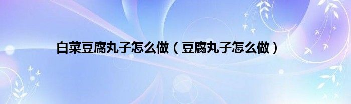 大家好,小问来为大家解答以上问题。白菜豆腐丸子怎么做,豆腐丸子怎么做这个很多人还不知道,现在让我们一起来看看吧!