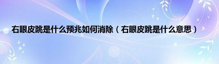 以上就是【右眼皮跳是什么预兆如何消除,右眼皮跳是什么意思】相关内容。