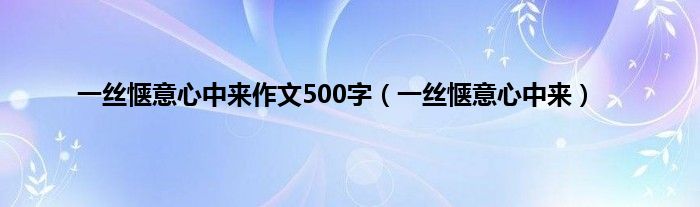 以上就是【一丝惬意心中来作文500字,一丝惬意心中来】相关内容。