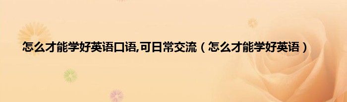 以上就是【怎么才能学好英语口语,可日常交流,怎么才能学好英语】相关内容。