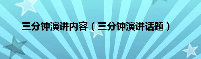 大家好,小问来为大家解答以上问题。三分钟演讲内容,三分钟演讲话题这个很多人还不知道,现在让我们一起来看看吧!