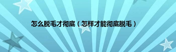 大家好,怎么脱毛才彻底,怎样才能彻底脱毛很多人还不知道,现在让我们一起来看看吧!