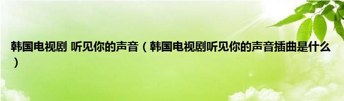 大家好,韩国电视剧 听见你的声音,韩国电视剧听见你的声音插曲是什么很多人还不知道,现在让我们一起来看看吧!