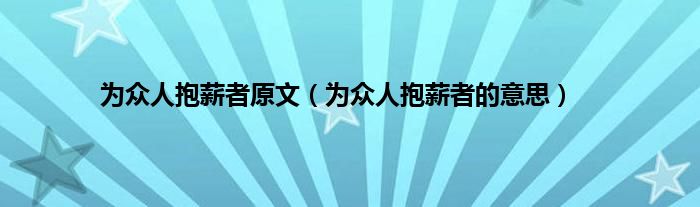 大家好,为众人抱薪者原文,为众人抱薪者的意思很多人还不知道,现在让我们一起来看看吧!