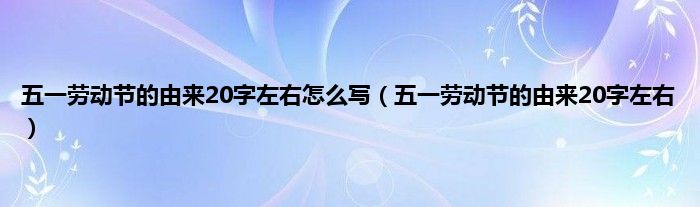 本文,五一劳动节的由来20字左右怎么写,五一劳动节的由来20字左右到此就分享完毕,希望对大家有所帮助。