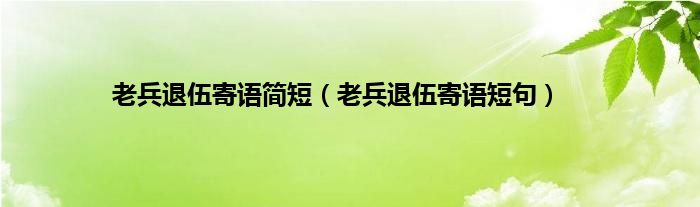 大家好,小问来为大家解答以上问题。老兵退伍寄语简短,老兵退伍寄语短句这个很多人还不知道,现在让我们一起来看看吧!