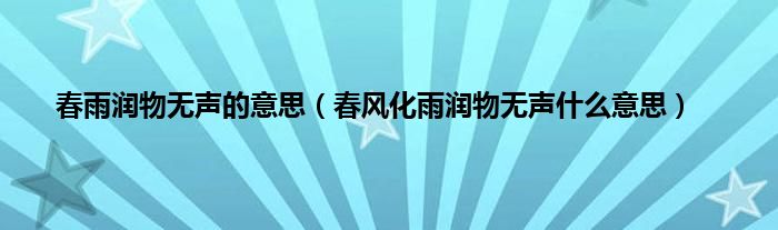 本文,春雨润物无声的意思,春风化雨润物无声什么意思到此就分享完毕,希望对大家有所帮助。